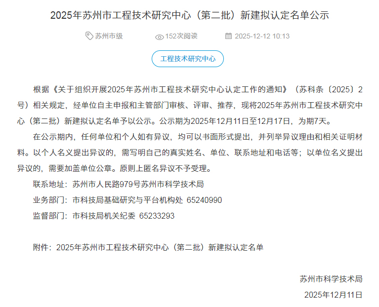 近日,苏州市相关权威部门传来振奋人心的消息:为积极响应《苏州市推进规模以上工业企业研发机构全覆盖三年行动方案》,大力推进研发机构创新赋能产业行动,经过严谨细致的评审与公示流程,STEKI 昆山工厂成功入选2025年苏州市工程技术研究中心(第二批)拟建名单。这一殊荣的获得,标志着公司在研发体系建设、自主创新能力提升以及产业技术支撑方面实现了重大跨越,踏上了新的发展征程。